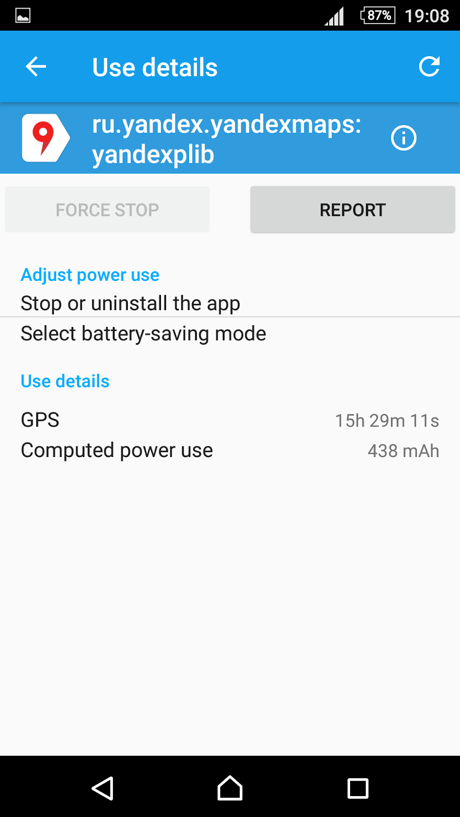 Battery usage - показывает сколько приложение потребило энергии с момента последней полной зарядки.